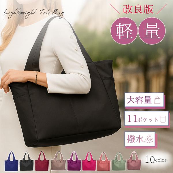 トートバッグ レディース 軽い a4 軽量 大きめ 通勤 ナイロン 軽い ファスナー 大きめ軽い 撥水 メンズ 大容量 ポケット多い ファスナー付き
