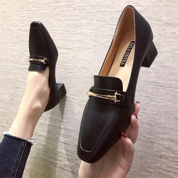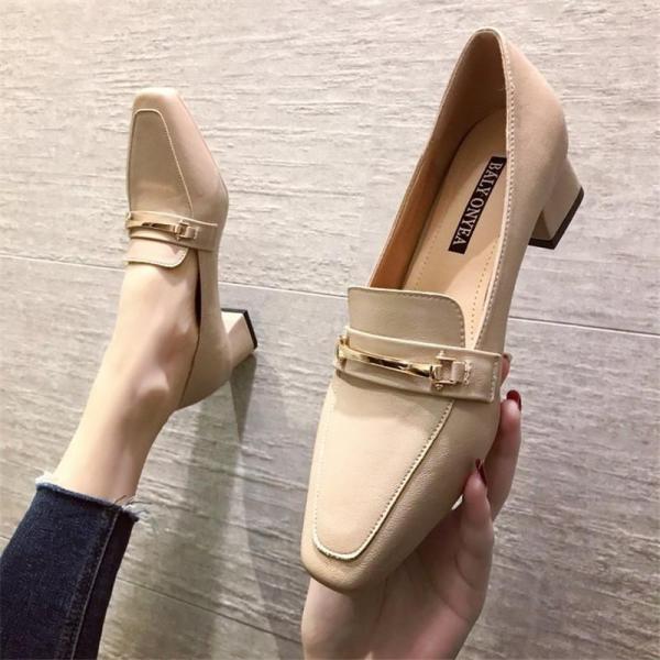 ローファー パンプス レディース レザーシューズ パンプス ミドルヒール 中ヒール 太めヒール 歩きやすい 革靴 ビジネス 通勤 カジュアル 高級感