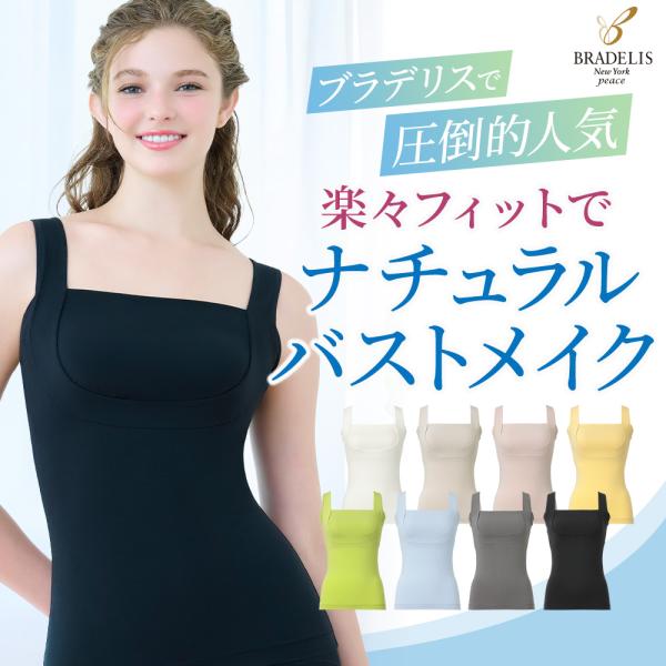 ブラトップ ブラデリス ブラキャミ ブラデリスニューヨーク カップ付きタンクトップ タンクトップ 補正下着 QVC セール 綿混楽々 daily ブラキャミ 25