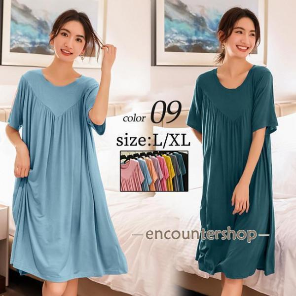 パジャマ レディース ワンピース ルームウェア 接触冷感 涼しい ひんやり トップス 半袖 無地 部屋着 リラ