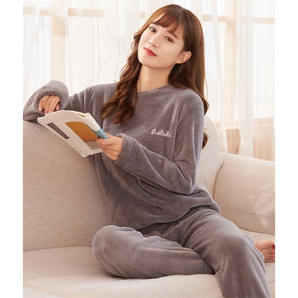 パジャマ ルームウェア レディース 秋冬 モコモコ 長袖 フランネルルームウェア 暖かい 上下セット 寝巻き 部屋着 ゆったり ナイトウェア