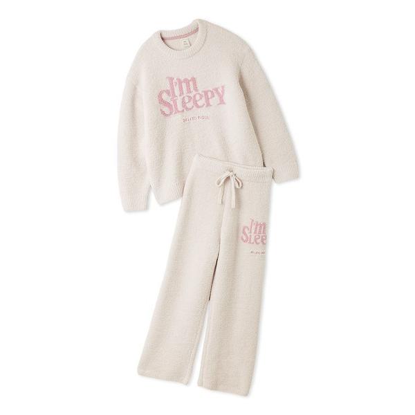 パジャマ ルームウェア パウダースリーピーロゴジャガードプルオーバー&ロングパンツセット レディース