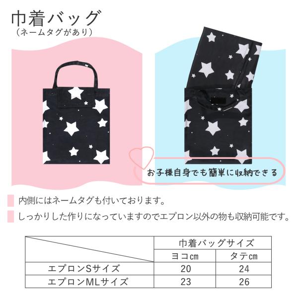 キッズ エプロン 三角巾 巾着バッグ 3点セット 給食着 子供 着脱簡単 小学生 ネームタグ付き 男の子 女の子 子供用 かぶるだけ