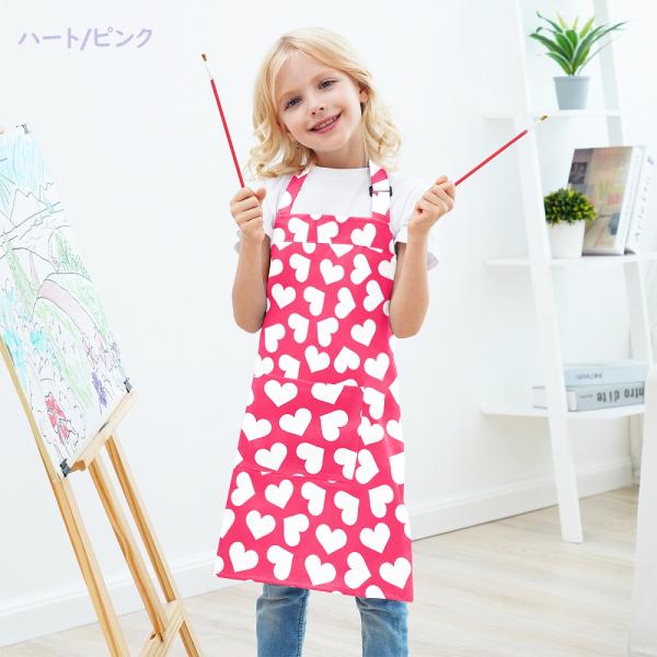 キッズ エプロン 小学生 低学年 中学生 かわいい 無地 シンプル 柄 恐竜 虹 こども 男の子 女の子 子供 おしゃれ 着脱簡単 かぶるだけ