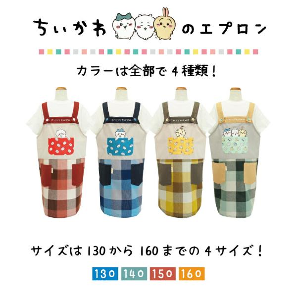 キッズ エプロン キャラクター ちいかわ ハチワレ うさぎ 130 140 150 160 女の子 子供 キッズエプロン かわいい 入園入学 ネームタグ付き x4-ha43707all $$
