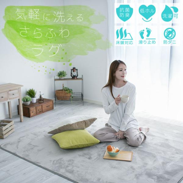 ラグ カーペット 洗える 2畳 おしゃれ オールシーズン 185×185 防ダニ ラグマット 滑り止め付 ホットカーペット 床暖対応 ウォッシャブル 北欧