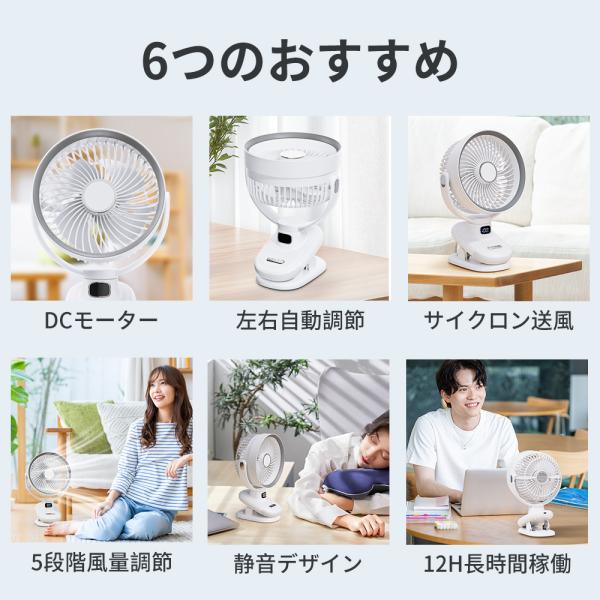 【2025革新&3D首振り】クリップ扇風機 卓上扇風機 USB充電式 大風量 強力 LEDライト付き/マイナスイオン空気清浄/タイマー機能 携帯 usbファン 車用 コンパクト