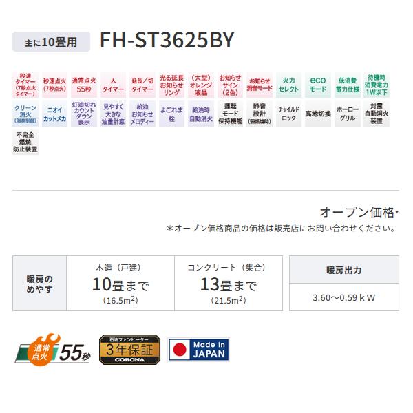 石油ファンヒーター コロナ STシリーズ FH-ST3625BY-W [FHST3625BYW] 主に10畳用 パールホワイト *5* CORONA 2025年製
