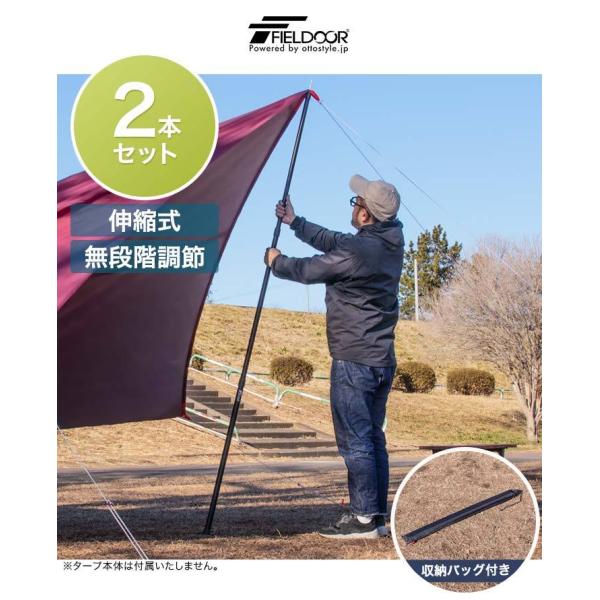 1年保証 テントポール 無段階 高さ調整 直径28mm 高さ89〜230cm アルミ製 2本セット スライド伸縮式 タープポール テント キャンプ アウトドア 安い 送料無料