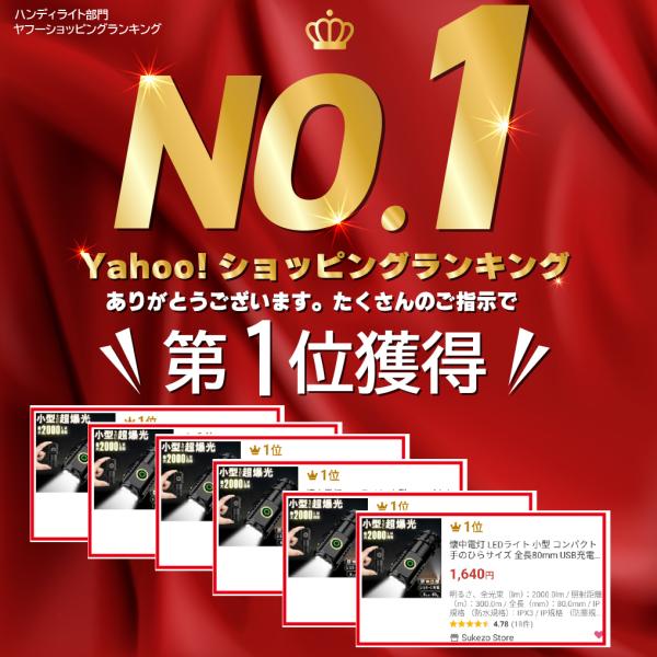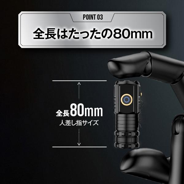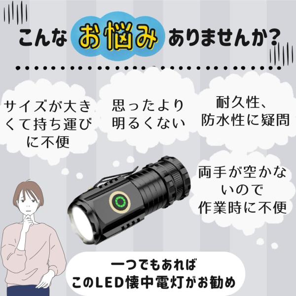 懐中電灯 LEDライト 小型 USB充電式 強力 防災 コンパクト 充電式 手のひらサイズ 全長80mm 説明書付き