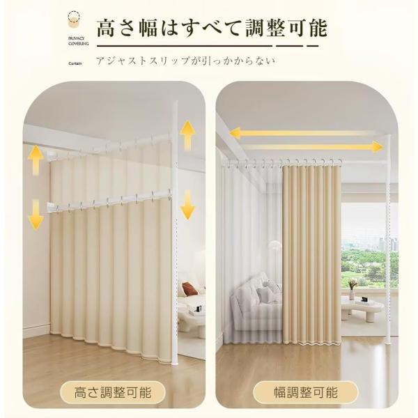 つっぱり式 間仕切り パーテーション 部屋仕切り カーテンレール パーテーション突っ張り棒 自立式 幅70cm〜3.60cm 高さ210cm〜310cm 非破壊設置 調節可能