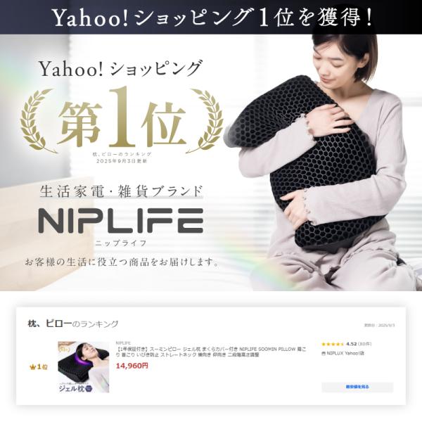 【1年保証付き】スーミンピロー ジェル枕 まくらカバー付き NIPLIFE SOOMIN PILLOW 肩こり 首こり いびき防止 ストレートネック 横向き 仰向き 二段階高さ調整