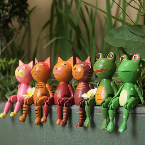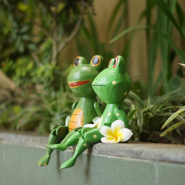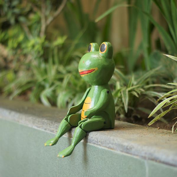 ぶらぶらウッドオブジェ アジアン カエル かえる 蛙 人形 木彫り 置物 バリ カエルの置物 木製 オブジェ 動物 結婚祝い 引っ越し祝い 玄関 トイレ