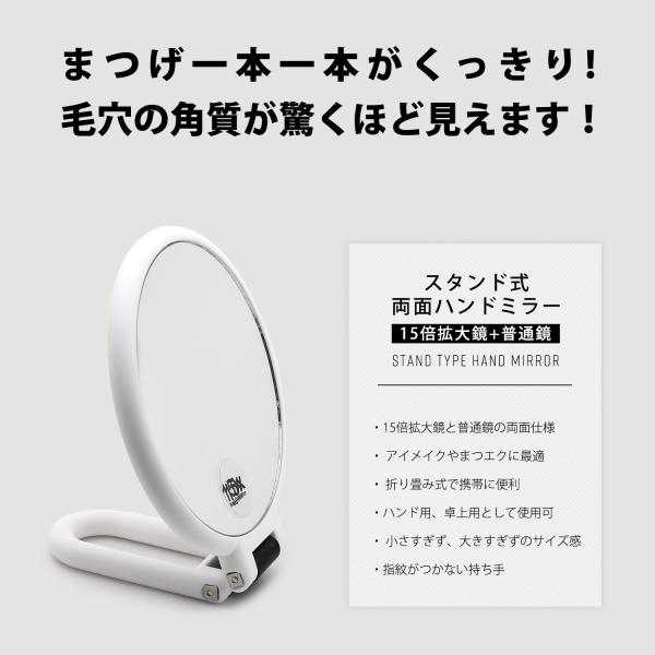 15X スタンド式 両面 ハンドミラー 15倍拡大鏡+普通鏡 手持ちミラー メイクアップミラー 鏡 両面ペデスタル拡大