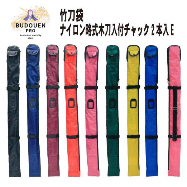 剣道 竹刀袋 チャック式ナイロン製竹刀袋 E 2本入れ 木刀入付き 黒/紺/ワイン/赤/ピンク/緑/黄/青 長さ調整可能な肩掛け紐付き