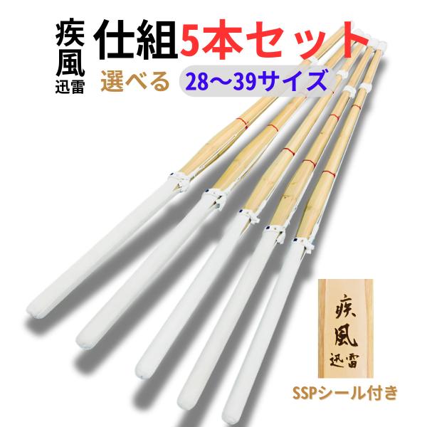 剣道 竹刀 5本 セット 疾風迅雷(焼) サイズ 選べる まとめ買い 黒白 吟風完成品 28〜39サイズ SSP付き 男子 女子 送料無料(北海道・沖縄除く)