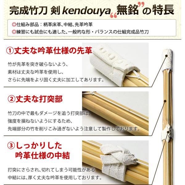 【SSPシール付・安心交換保証付】 3本セット 剣道 竹刀 28-38サイズ 床仕組完成竹刀 無銘 「剣kendouya」 送料無料 まとめ買い