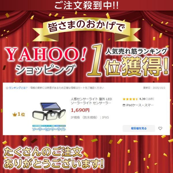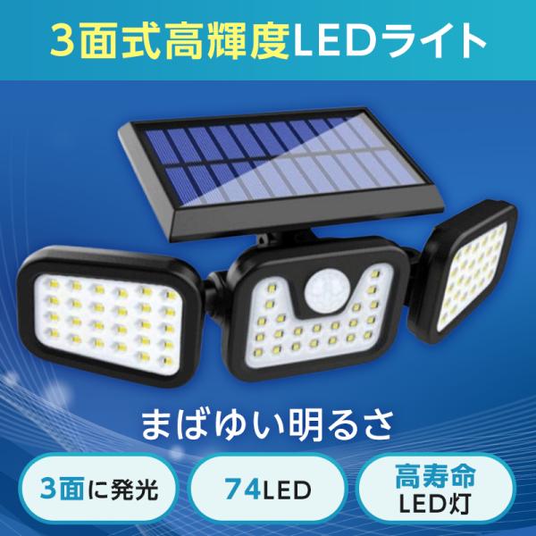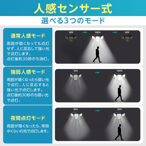 人感センサーライト 屋外 LED ソーラーライト センサーライト 人感 充電式 防水 玄関 防犯 カーポート 照明 明るい