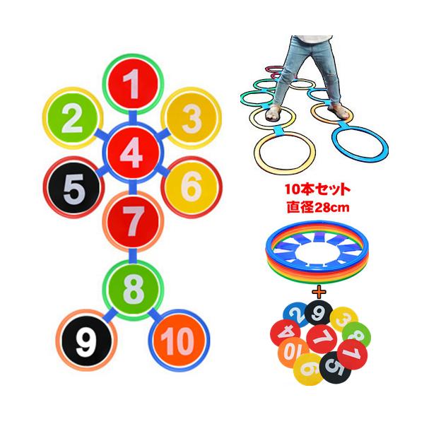 ケンケンパ リング フラットマーカー スポットマーカー サッカー ステップカラーラバーリング 10個セット スピードリング ケンパ遊び