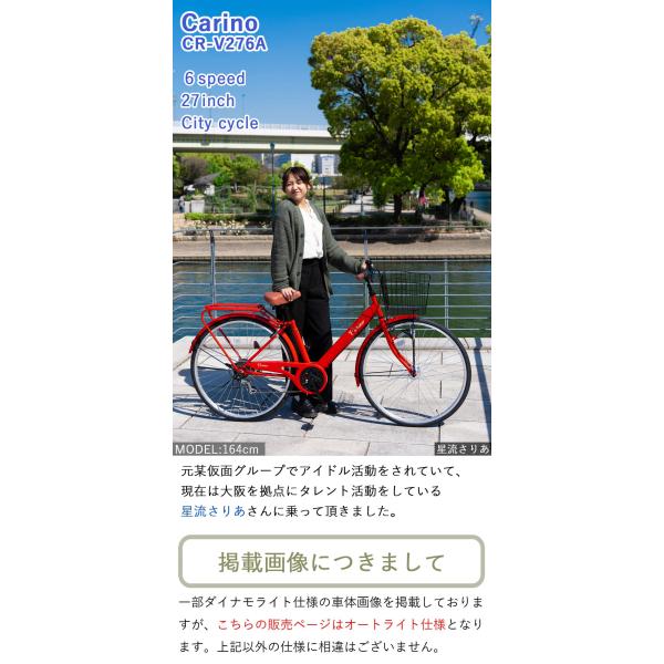 自転車 27インチ 完成品 組立済 LEDオートライト 6段変速 大型カゴ クラス27パイプキャリア 後輪錠 シティサイクル カリーノ Carino CR-V276A