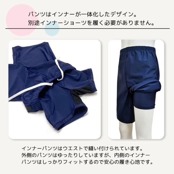 ピッタリしすぎない スクール水着 上下セット 男女兼用 インナーパンツ付き めくれ防止ホック付き UVカットUPF50+ ジェンダーレス 体型カバー sk013set