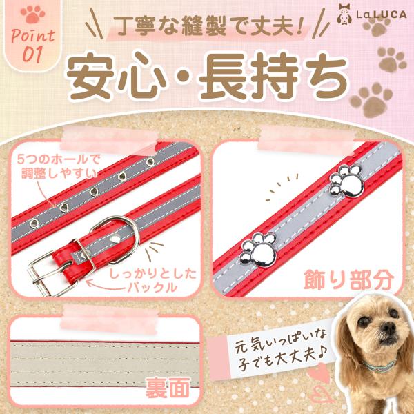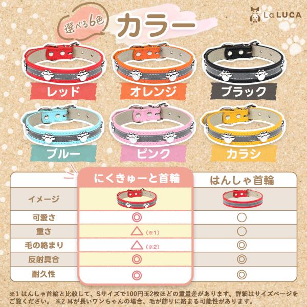 にくきゅーと首輪 首輪 犬 首輪 猫 首輪 おしゃれ 革 定番 スタンダード PU レザー 反射素材 小型犬 中型犬 散歩 かわいい 人気 肉球 LaLUCA ポイント利用