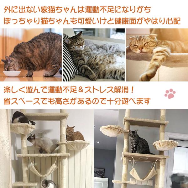 キャットタワー 突っ張り型 おしゃれ スリム 安定感 多頭飼い 260cm つっぱり 大型 爪と ぎ 麻紐 猫タワー ねこ 運動不足 ストレス解消 ペット 猫用品