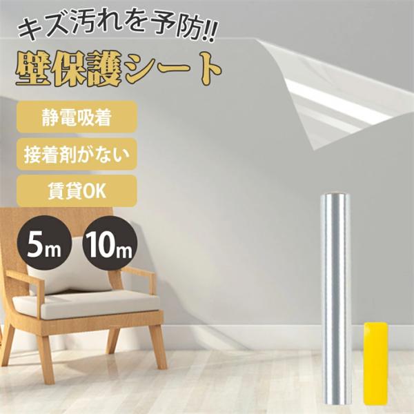 壁紙保護シート 5m/10m はがせる 賃貸OK 猫の爪とぎ/落書き/汚れ防止 剥がせる 透明 弱粘着 DIY簡単 ペット ひっかき傷