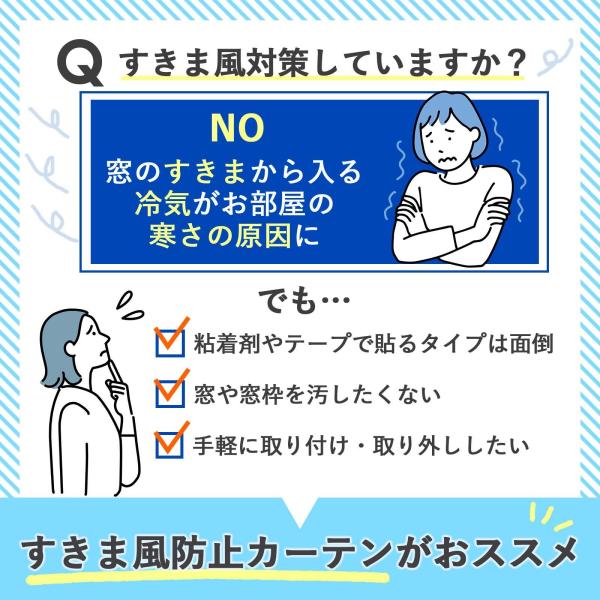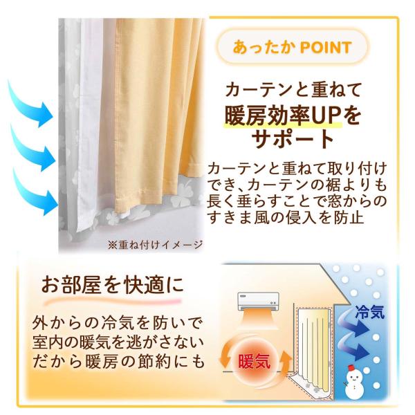 すきま風防止カーテン 腰高窓用 110cm×145cm 2枚組 S字フック付 半透明 カットOK 寒さ対策 冷気 防寒 節約 工具不要 断熱効率UP