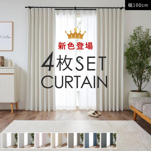 4枚組カーテン 4枚セット 1級遮光 2級遮光 遮光 幅100cm×丈105cm 幅100cm×丈135cm 幅100cm×丈178cm 幅100cm×丈185cm 100×丈200cm (厚地2枚+レース2枚)