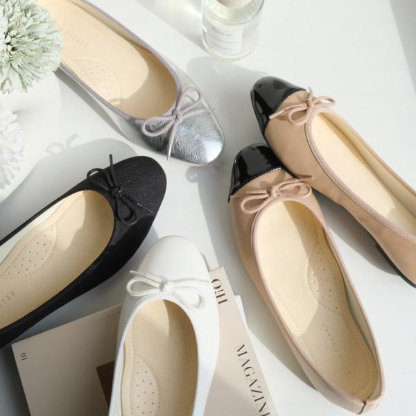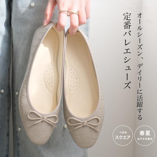 バレエシューズ レディース フラットシューズ セミスクエアトゥ パンプス 大きいサイズ ブラック ホワイト レッド ドット チェック パイソン SlV FX2030SS ki5