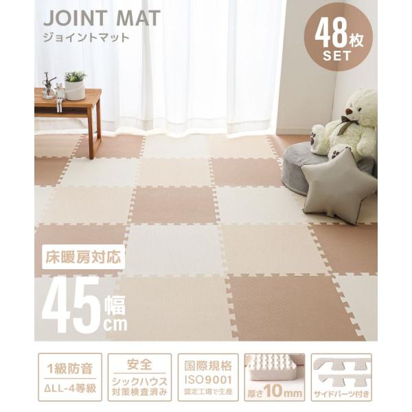 ジョイントマット 6畳 48枚 大判 厚手 プレイマット フロアマット 防音 おしゃれ サイドパーツ付き クッションマット ベビーマット キッズ 北欧