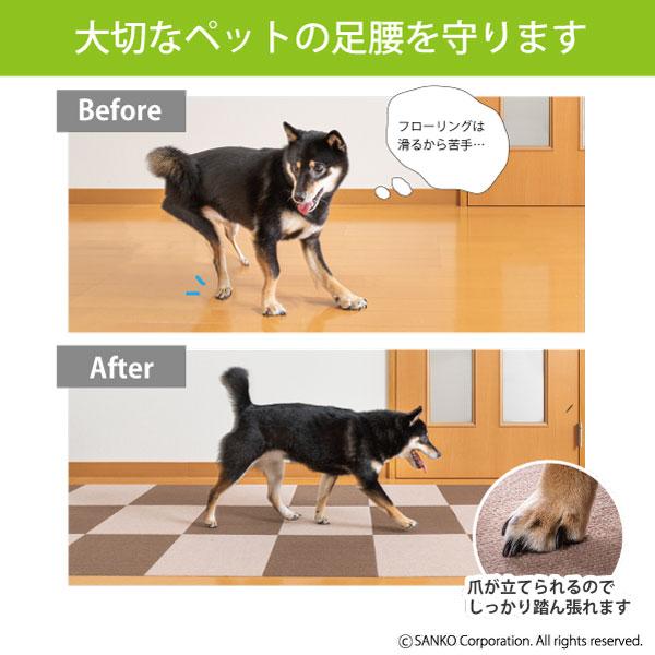 ジョイントマット タイル カーペット ペット 滑り止め 犬 ペット用 サンコー 撥水 おしゃれ 20枚入 30×30cm おくだけ吸着 ずれない