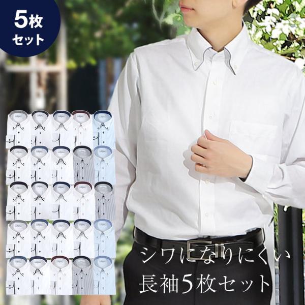 ワイシャツ メンズ 長袖 5枚 形態安定 大きいサイズ Yシャツ ビジネス シャツ スリム ボタンダウン レギュラー