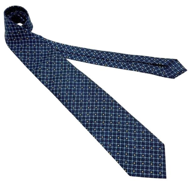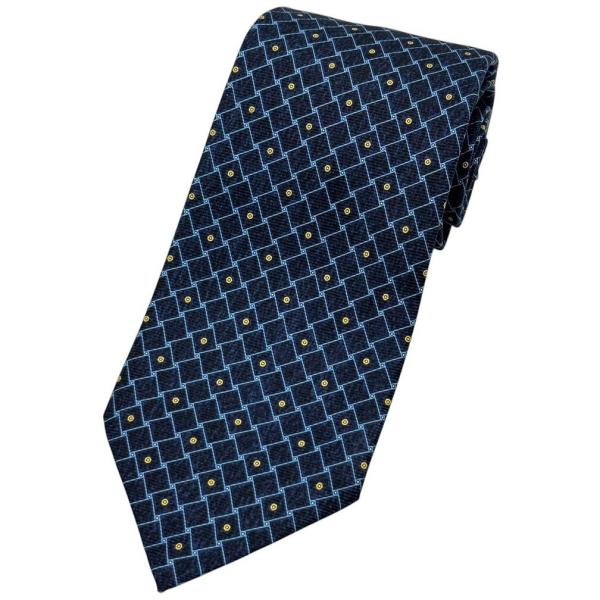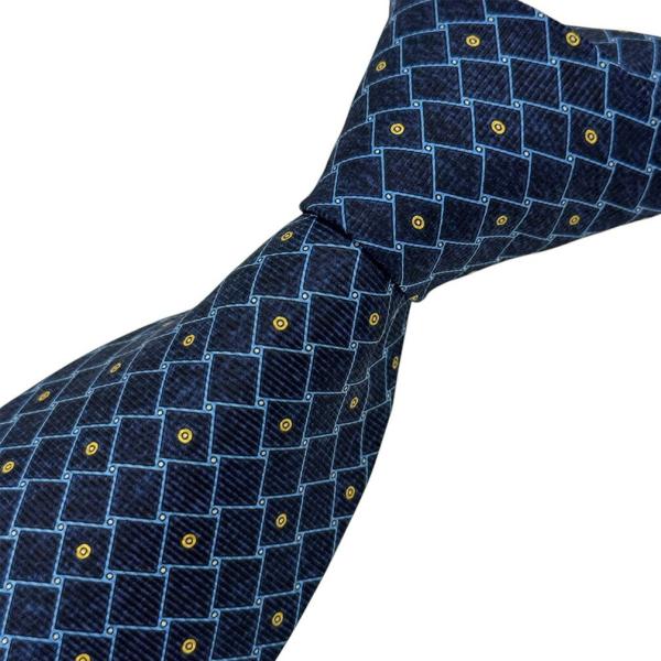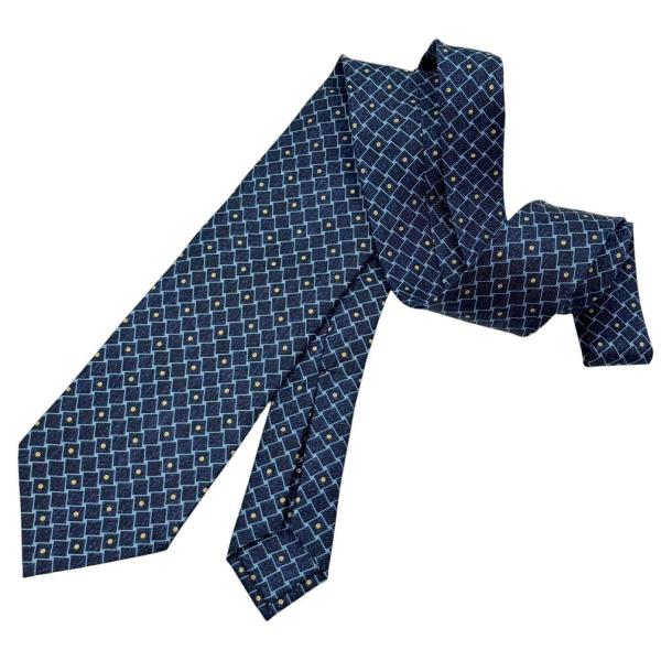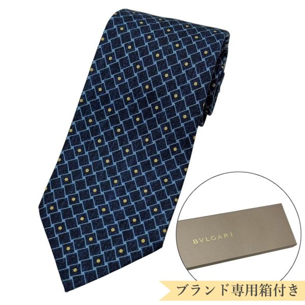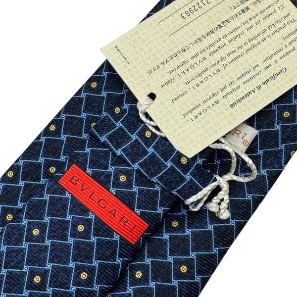 極美品 ブルガリ ブランド ネクタイ BVLGARI シルク 100% ワイドタイ 幾何学 ドット ネイビー 紺