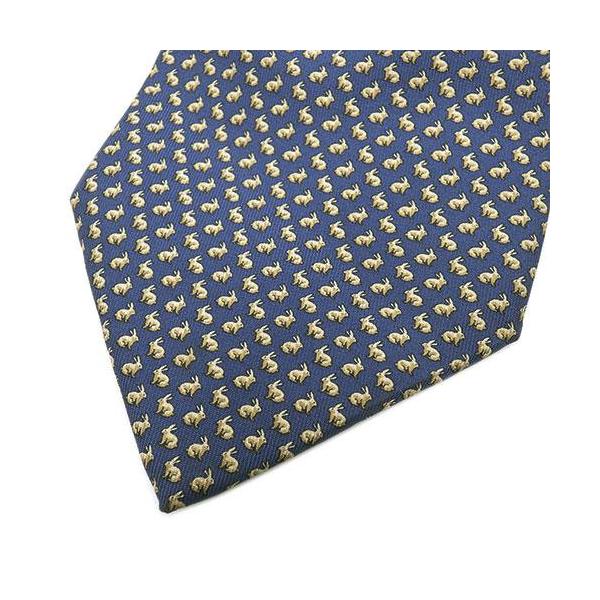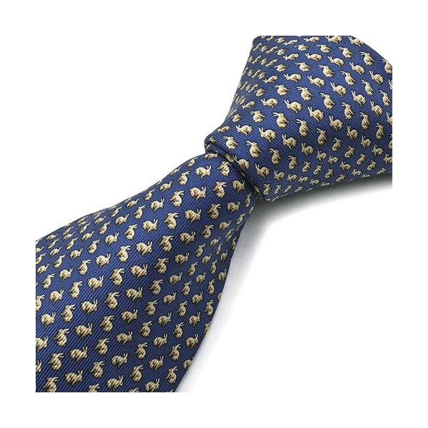 サルヴァトーレ フェラガモ ブランド ネクタイ FERRAGAMO シルク 100% ワイドタイ アニマル 動物 うさぎ ネイビー 紺 メンズ OJ10174