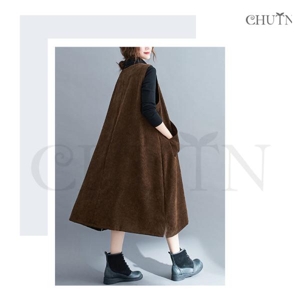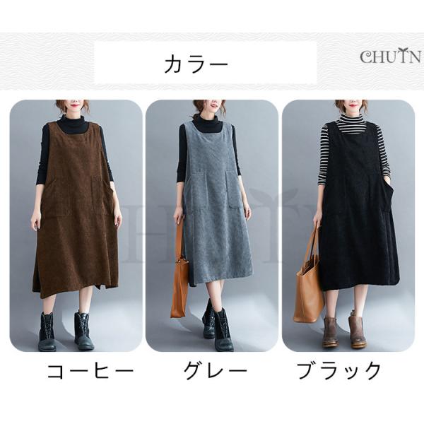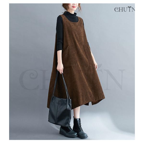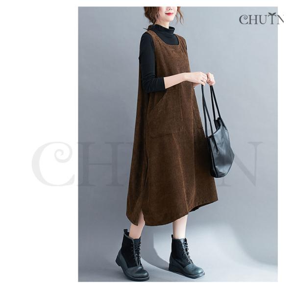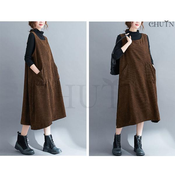 春秋冬コーデュロイワンピース膝丈 おしゃれ 着痩せサロペットスカート ノースリーブワンピースコーデュロイジャンパースカート 大人コーデュロイワンピース~2XL