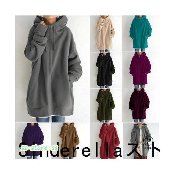パーカー レディース ジップアップパーカー ロング丈 裏起毛 パーカー 無地 秋冬 レディース アウター 部屋着 暖かい 大きいサイズ ゆったり 新作