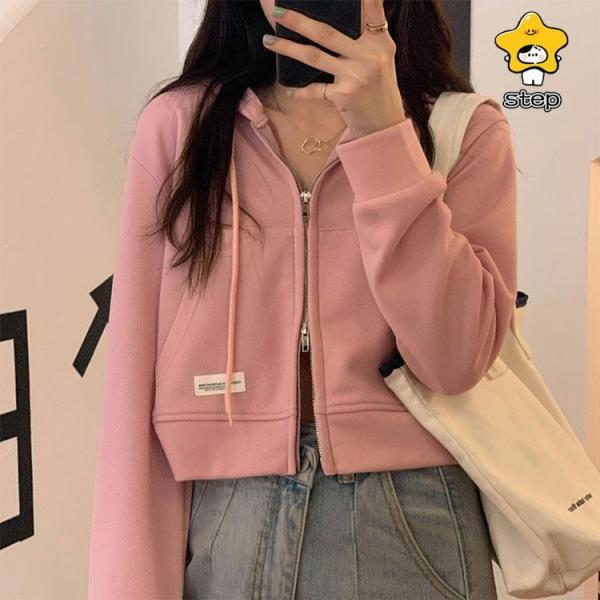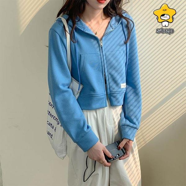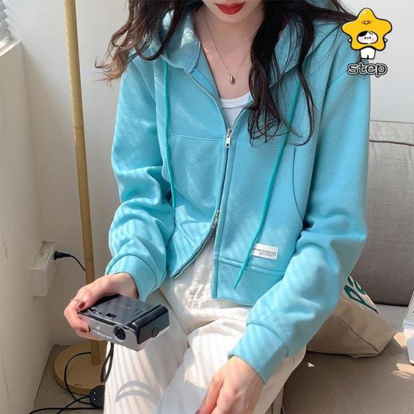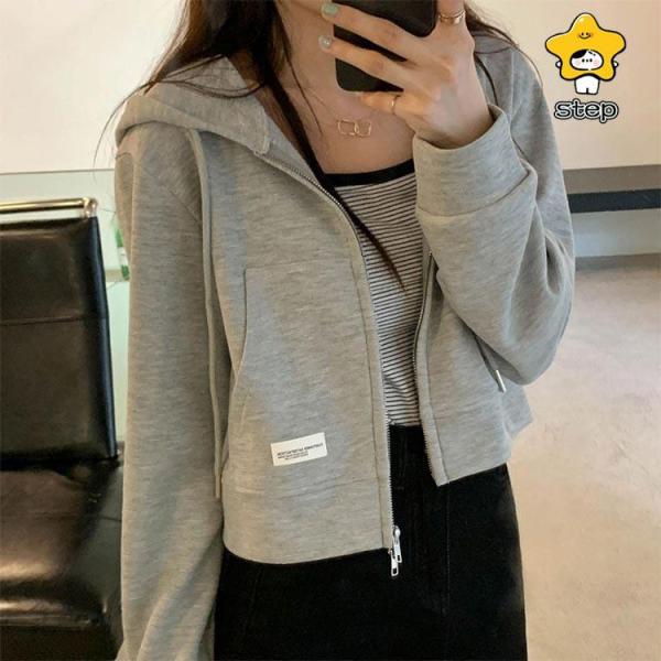 パーカー レディース ショート丈 ダブルジップパーカー 無地 ジップアップ プルオーバー 双方向ジッパー フード付き ライトアウター シンプ