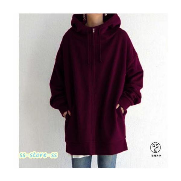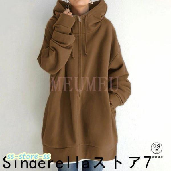 パーカー レディース ジップアップパーカー ロング丈 裏起毛 パーカー 無地 秋冬 レディース アウター 部屋着 暖かい 大きいサイズ ゆったり 新作