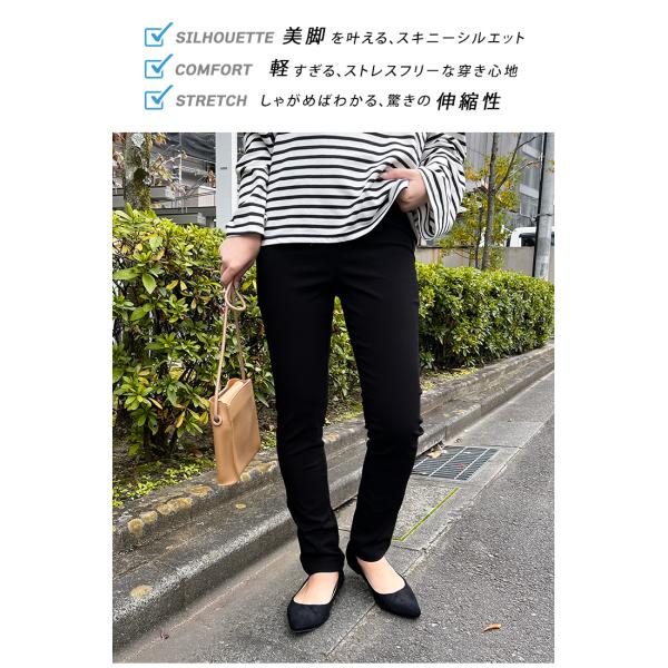 スキニーパンツ レディース 黒 ストレッチ 春 夏 秋 冬 細身 低身長 丈短め ボトムス ズボン ウエストゴム 伸縮 動きやすい オフィス