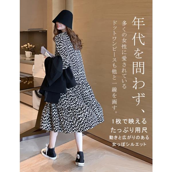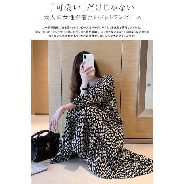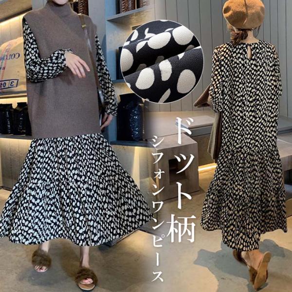 全品Point10倍!最大倍率50% ドット柄 シフォンワンピース レディース ワンピース シフォン ロングワンピース ロング丈 長袖