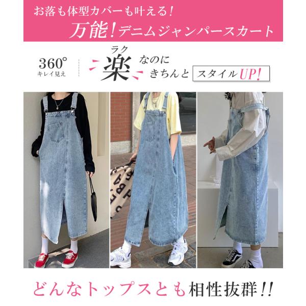デニムジャンパースカート デニムサロペット スカート ワンピース 体型カバー デニムワンピース デニム オールインワン カジュアル レイヤード レディース