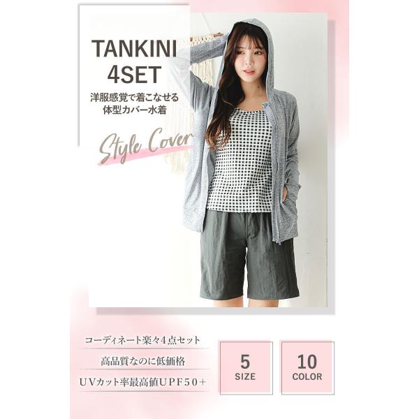 水着 レディース ラッシュガード 体型カバー ママ水着 30代 40代 50代 大人 女子 セット水着 かわいい おしゃれ タンキニ カバーアップ