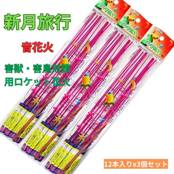 3パック 害獣・害鳥対策用 ロケット花火 新月旅行ロケット 12本入 花火 カラス おすすめ キャンプ 夏祭り お祭り はなび アウトドア 遊び 道具 遊具 庭 屋外
