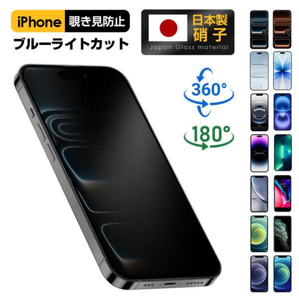 【2点目半額クーポン】 iPhone ガラスフィルム 360°/180°覗き見防止 iPhone 17 Pro Max ブルーライトカット iPhone16 15 14 13 Pro SE23 硬度10H 保護フィルム