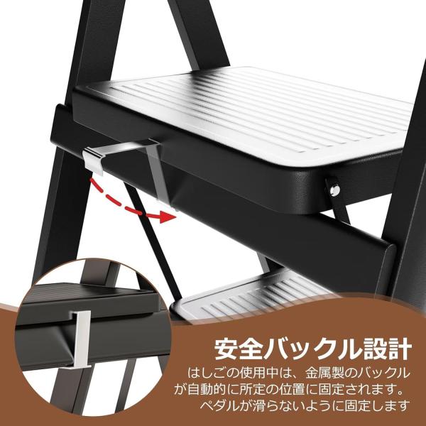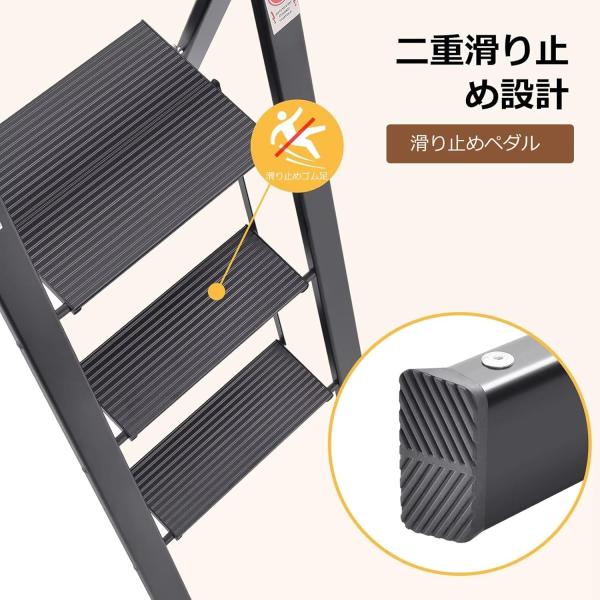 脚立 梯子 3段 踏み台 工具置き付き 折りたたみ はしご ステップ台 ステップスツール 軽量 おしゃれ 滑り止め付き 耐荷重 手すり付き スチール製 屋外 室内 掃除