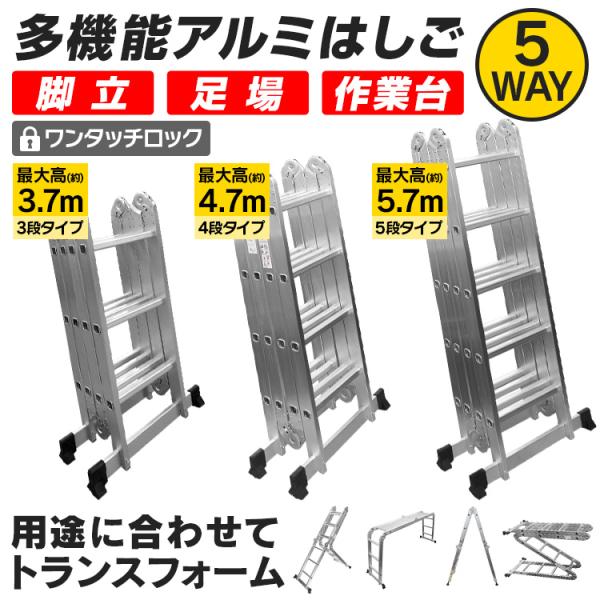 はしご 伸縮はしご 脚立 4段 ハシゴ 伸縮脚立 足場台 アルミ製 4.7m アルミ梯子 折りたたみ プレートなし 3メートル脚立 伸びる梯子