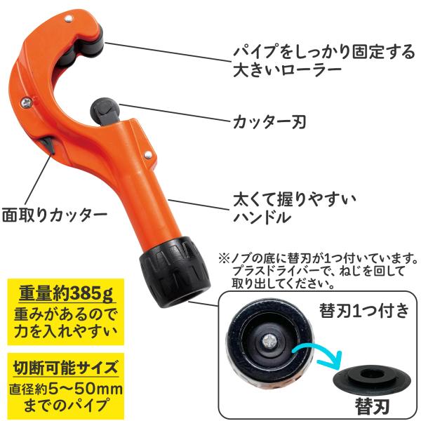 パイプスパッとカッター 5-50mm 替刃付き 挟んで回すだけ 女性も簡単 パイプ 塩ビ 物干し竿 切断 ごみ処理 パイプカッター 鉄 粗大ごみ 解体