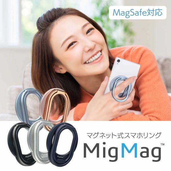 MagSafe対応リング MigMag standard model スマホリング マグネット着脱 MagSafe 充電 スマホスタンド マグセーフ MIMG-03BK/GR/SL/RG/BL